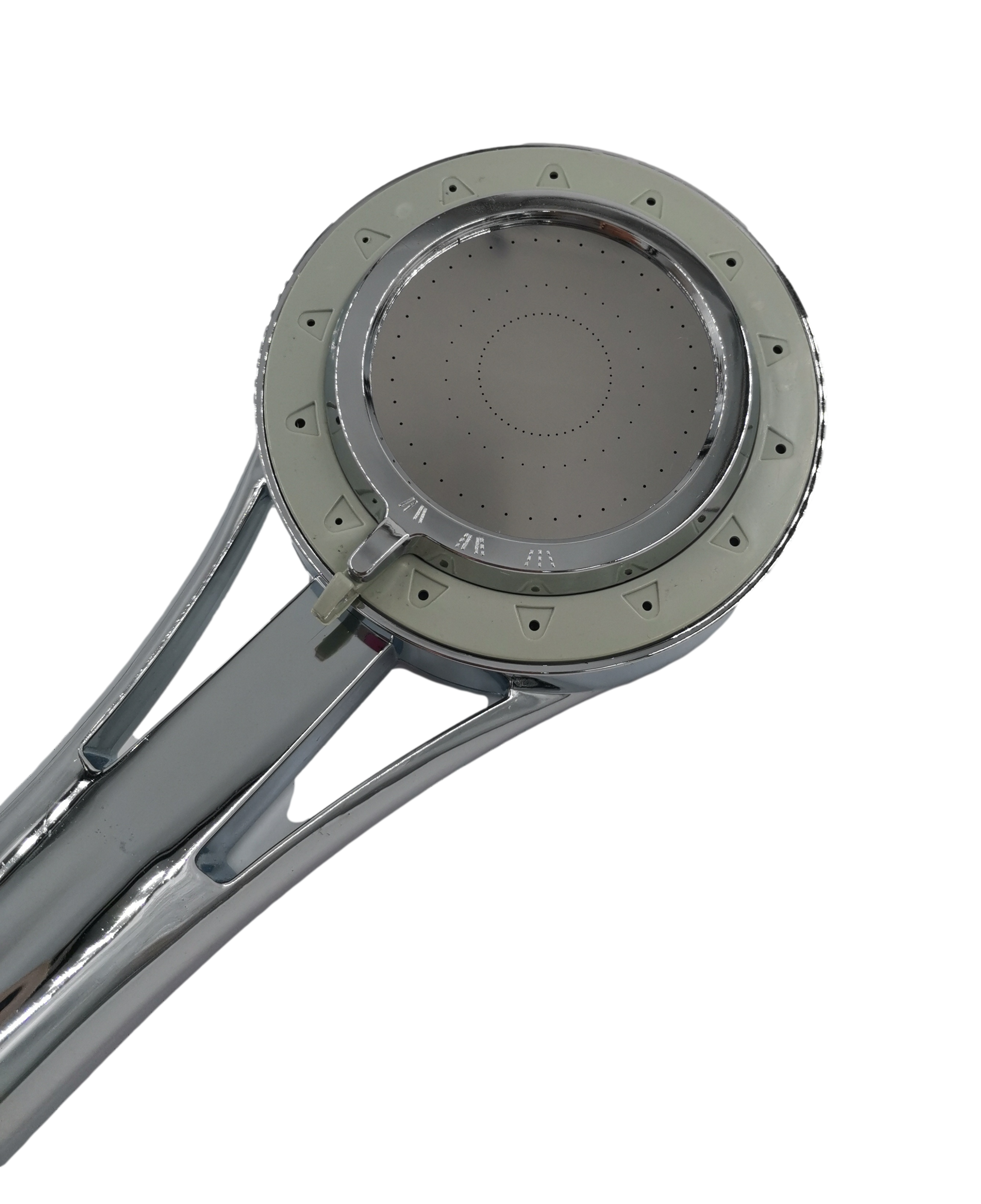 3 – funkcyjna słuchawka prysznicowa wykonana z tworzywa sztucznego, pokryta chromem.